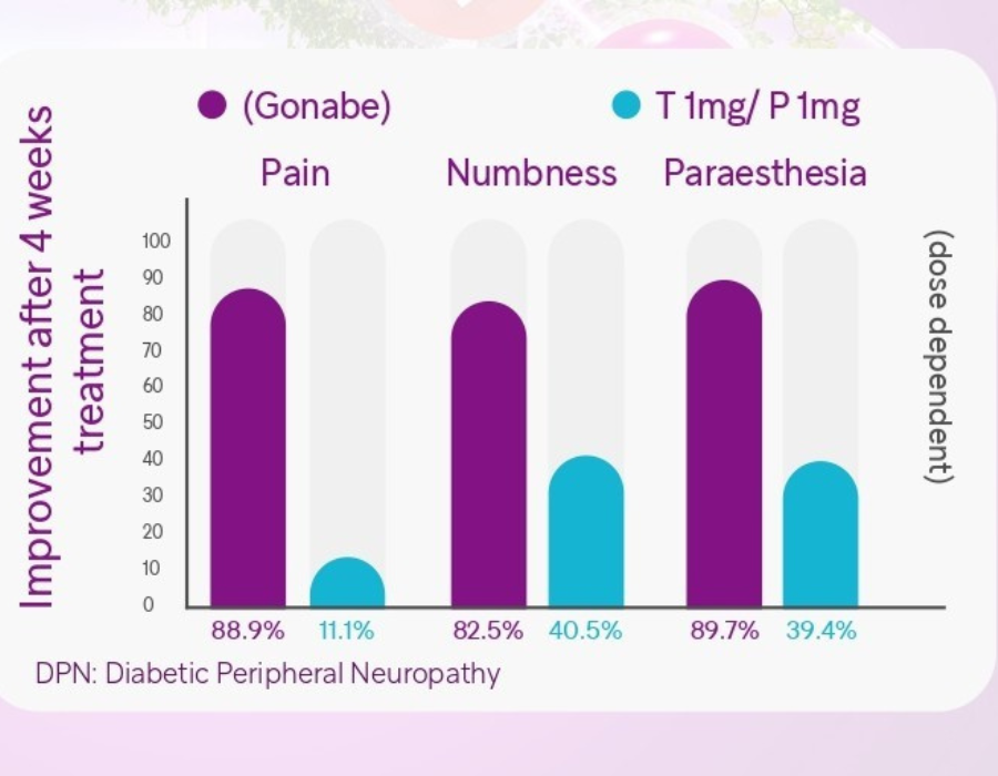 Gonabe impact of DPN symptoms:Numbers of patients: 4000Duration: 4 weeks Type: DPN patients